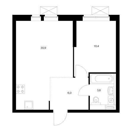 Однокомнатная квартира 38 м2